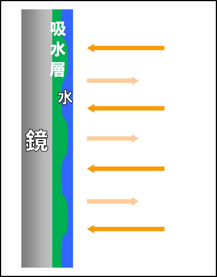 また、吸水層が鏡・ガラス表面から剥離するとも書かれていますが、これは材質次第で改善出来ます。